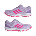 Discover the power of agility with the women's hockey Fabela Rise shoes. These adult hockey shoes blend synthetic and textile materials to create a breathable mesh upper, offering full support for lateral movements. The Impact Protection Zones and lightweight EVA midsole enhance comfort whilst ensuring stability during quick turns and dribbles, and a moulded Traxion outsole provides superior grip on any turf.