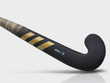 A mid bow, wooden indoor hockey stick with reinforcement.